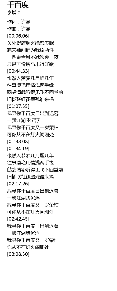 | [02:53.76] | 我寻你千百度又一岁荣枯 |