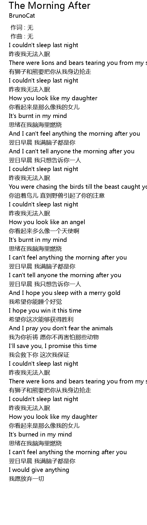 | [00:37.194] | And I can' t feel anything the morning after you |