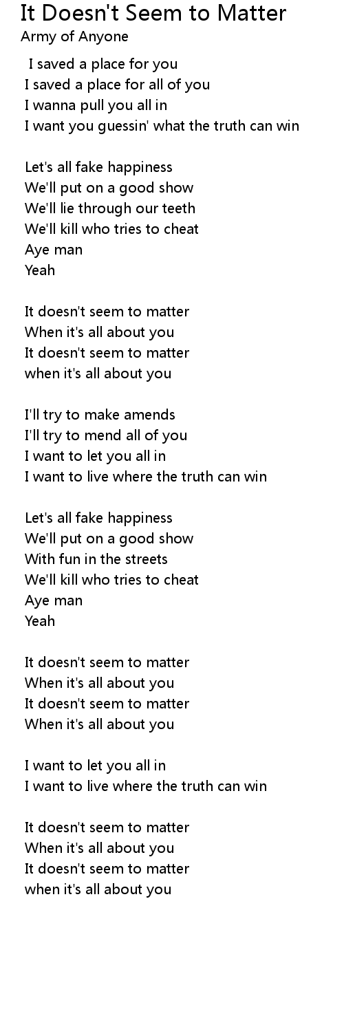 It Doesn't Seem to Matter Lyrics