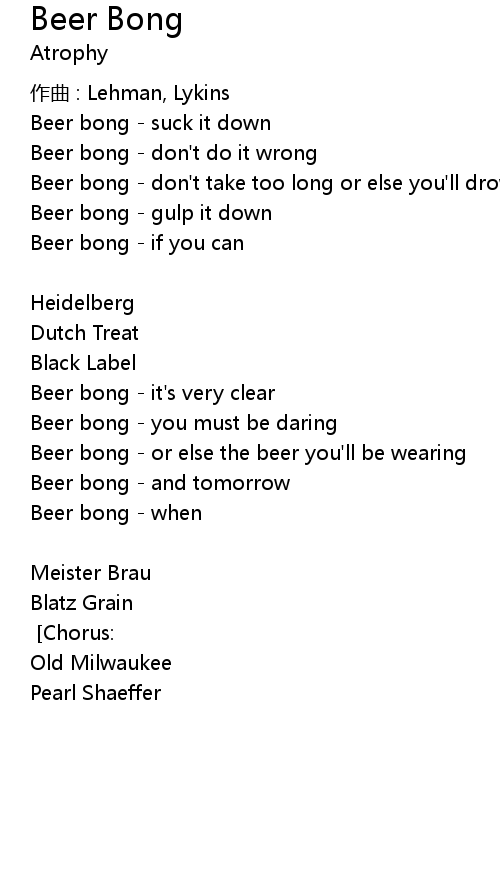 | Beer bong make it vanish if you' re a man Chorus: | |