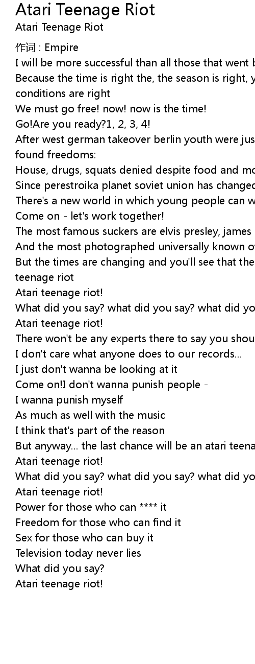 | But the times are changing and you'll see that the last chance will be an atari teenage riot | |