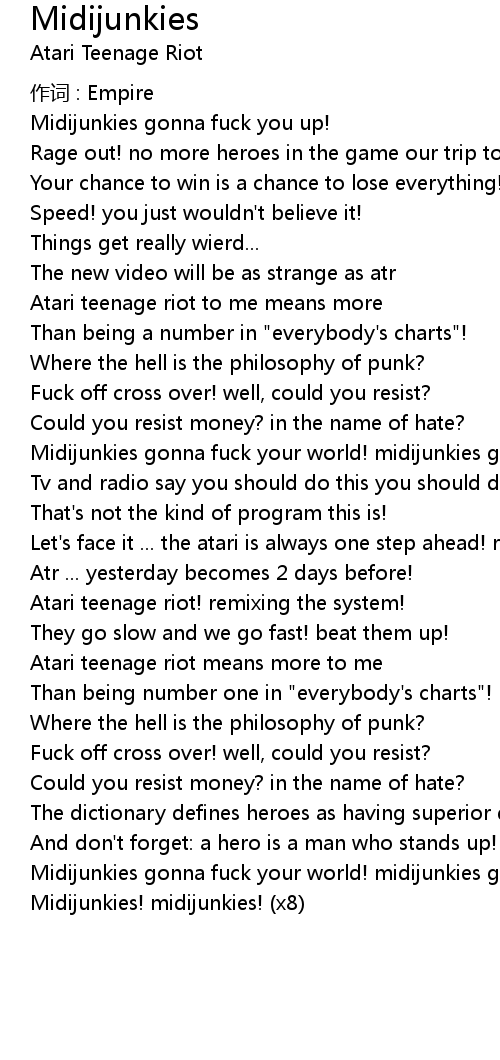 | Midijunkies gonna fuck your world! midijunkies gonna fuck you up! (x4) | |