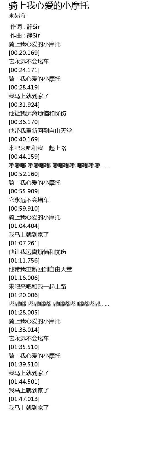 | [01:36.764] | 骑上我心爱的小摩托 |