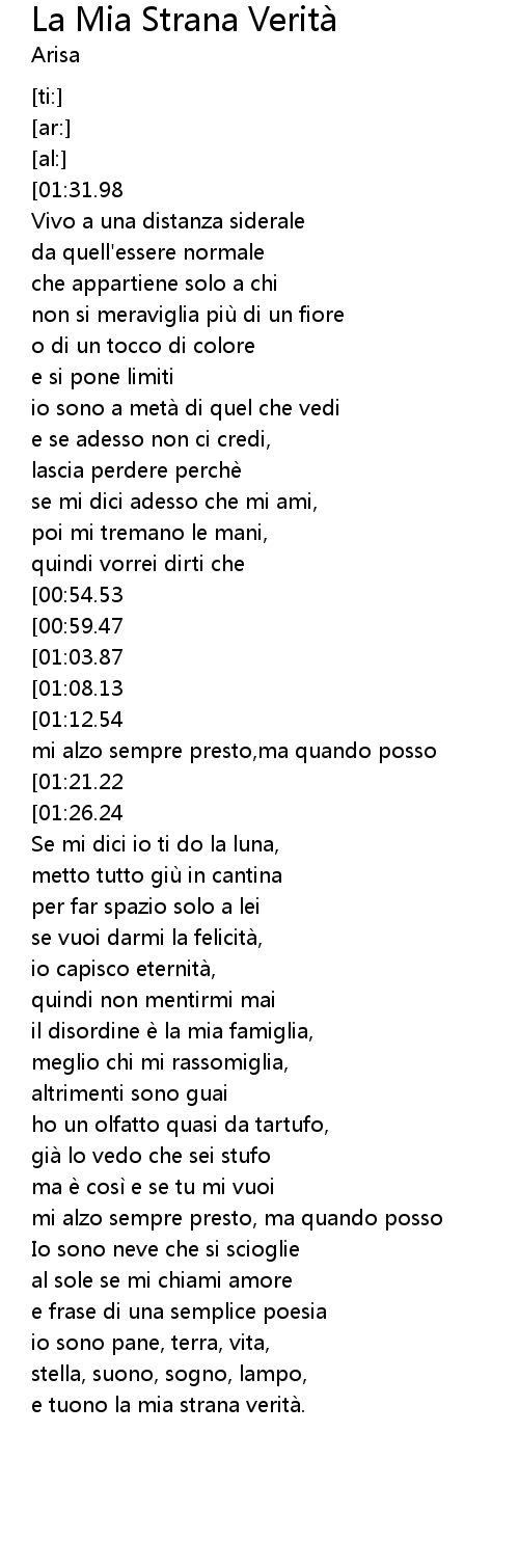 | [02:05.87] | ma è così e se tu mi vuoi |