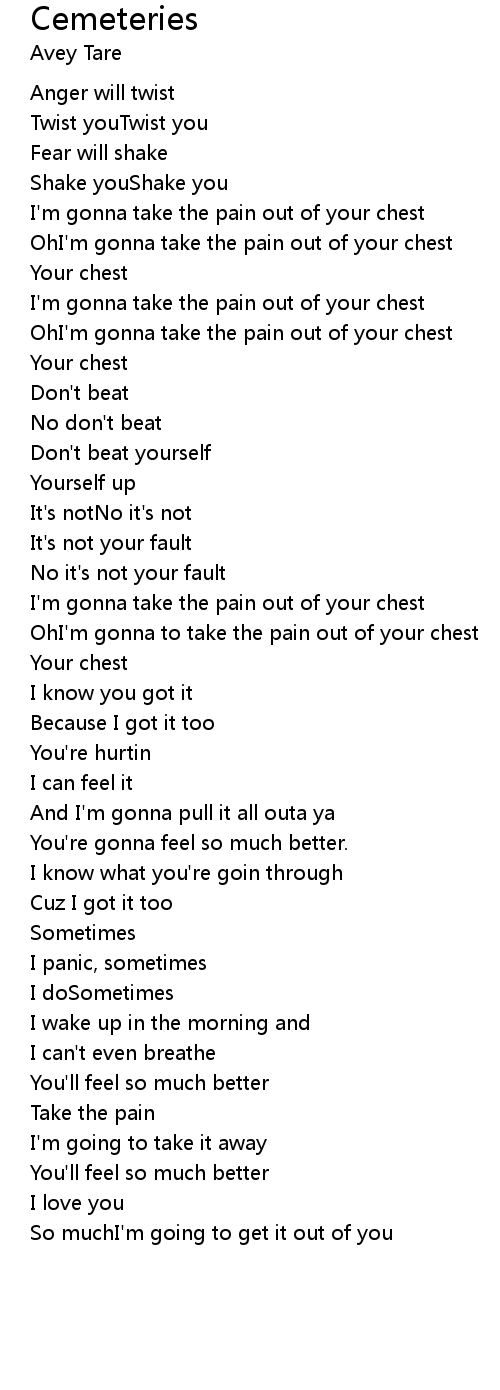 OhI'm gonna to take the pain out of your chest