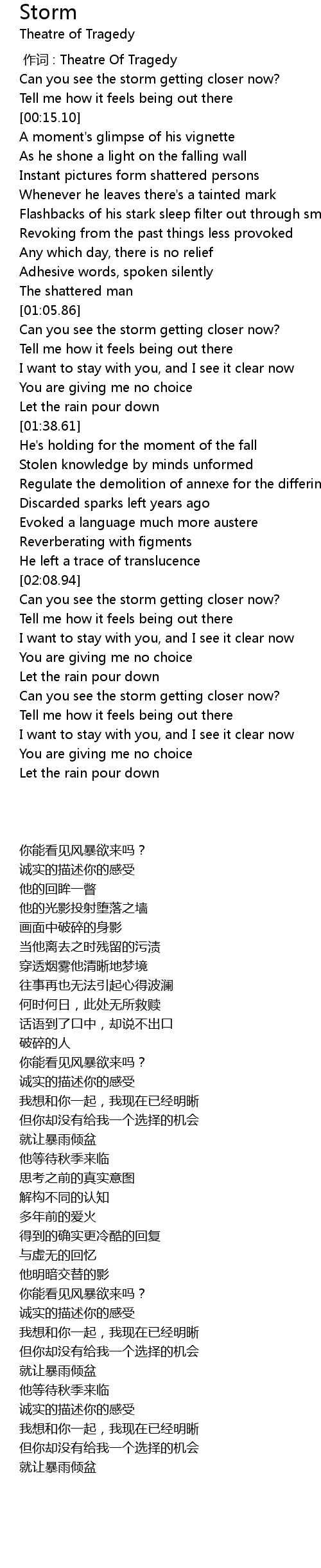 | [00:05.12] | Can you see the storm getting closer now? |