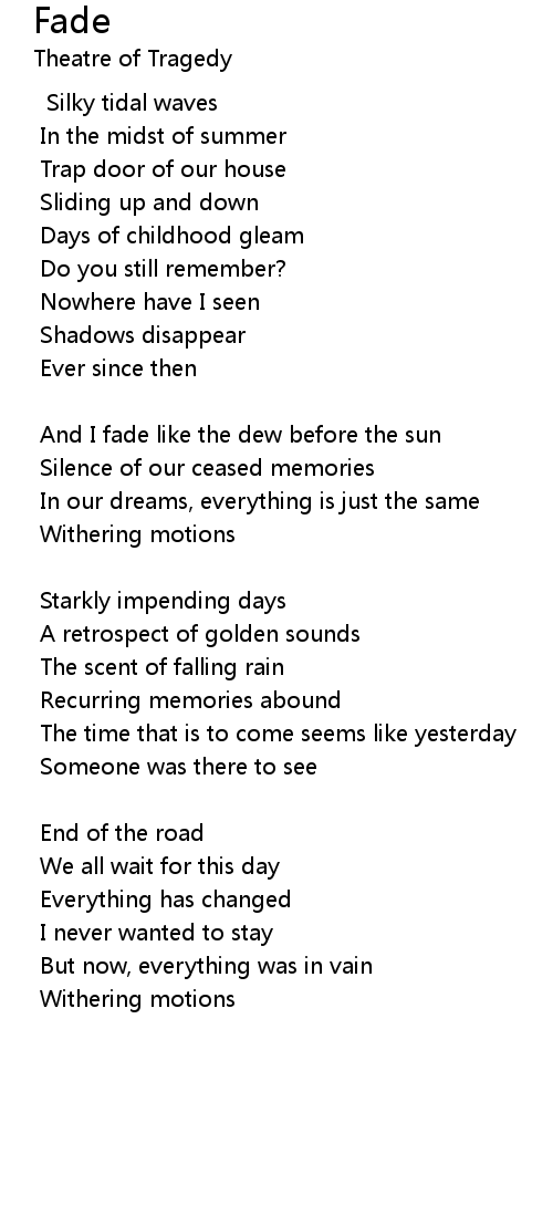 And I fade like the dew before the sun |