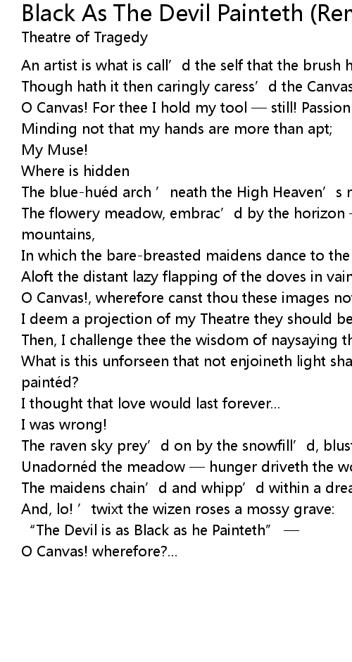 | O Canvas! For thee I hold my tool — still! Passionless it quivereth, | |