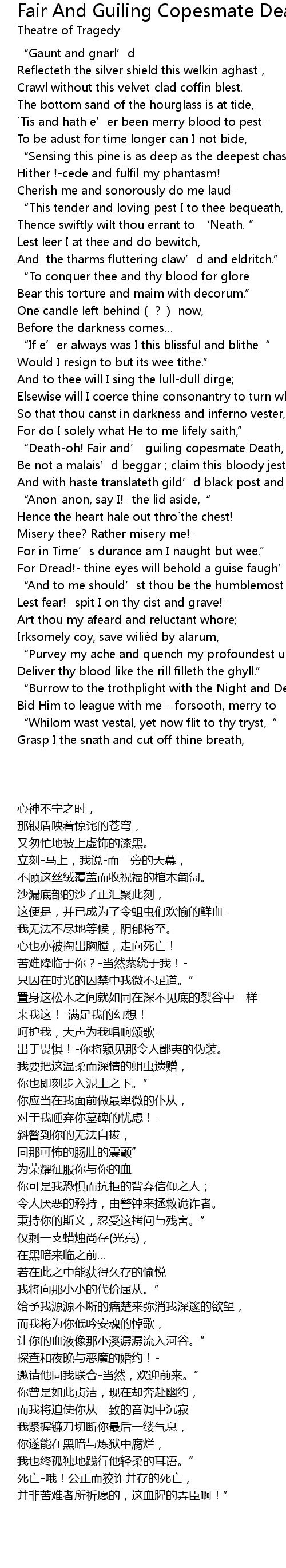 | [01:35.35] | For Dread!- thine eyes will behold a guise faugh’d.” |