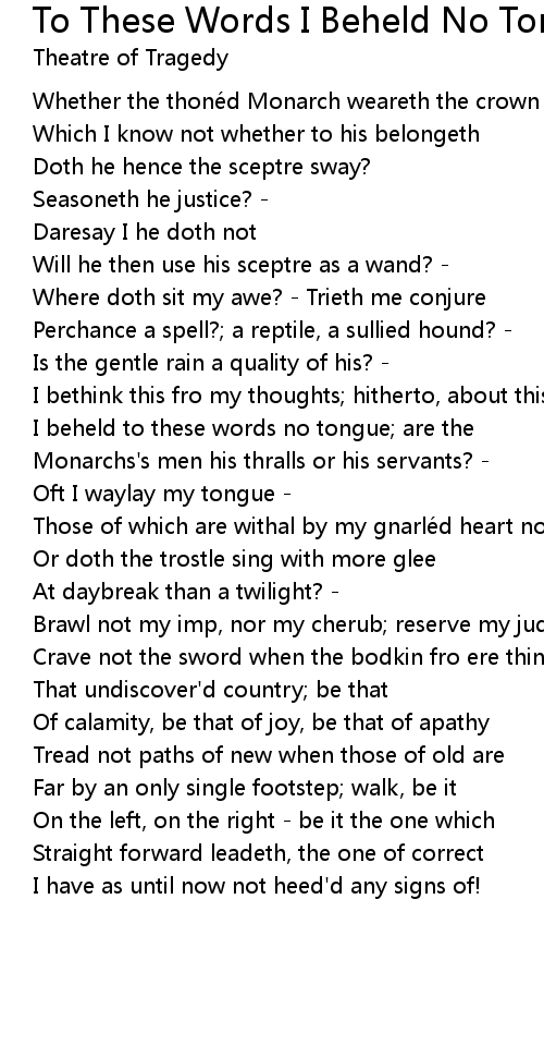 | I beheld to these words no tongue; are the | |