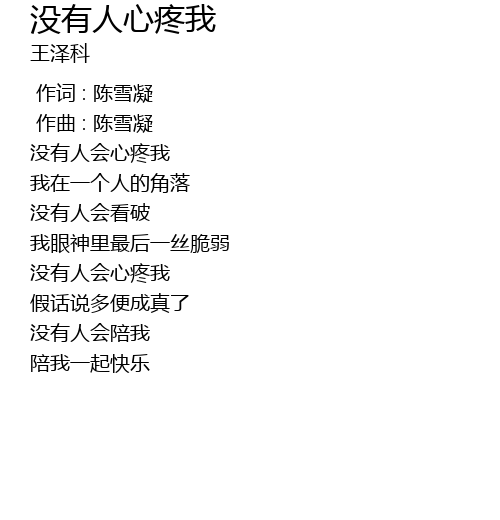 | [00:10.386] | méi yǒu rén huì xīn téng wǒ |