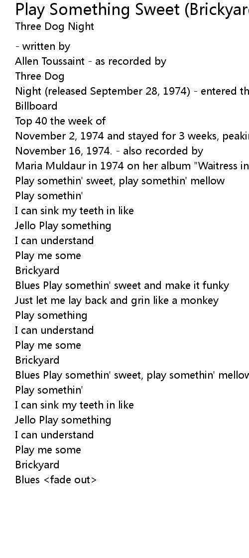 Blues Play somethin' sweet, play somethin' mellow |