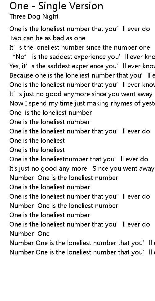| [01:17.40] | One is the loneliest number |
