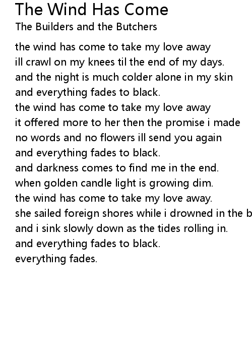 The Wind Has Come Lyrics
