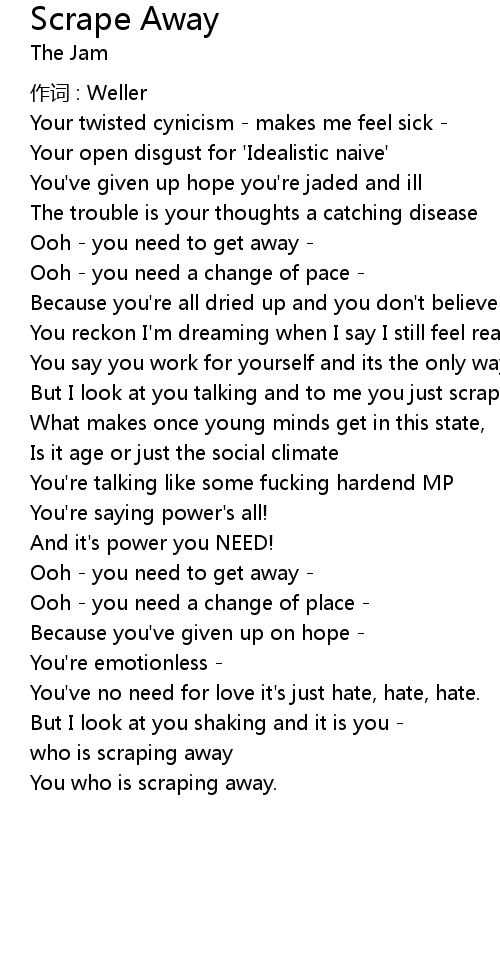 | Song | Scrape Away |
