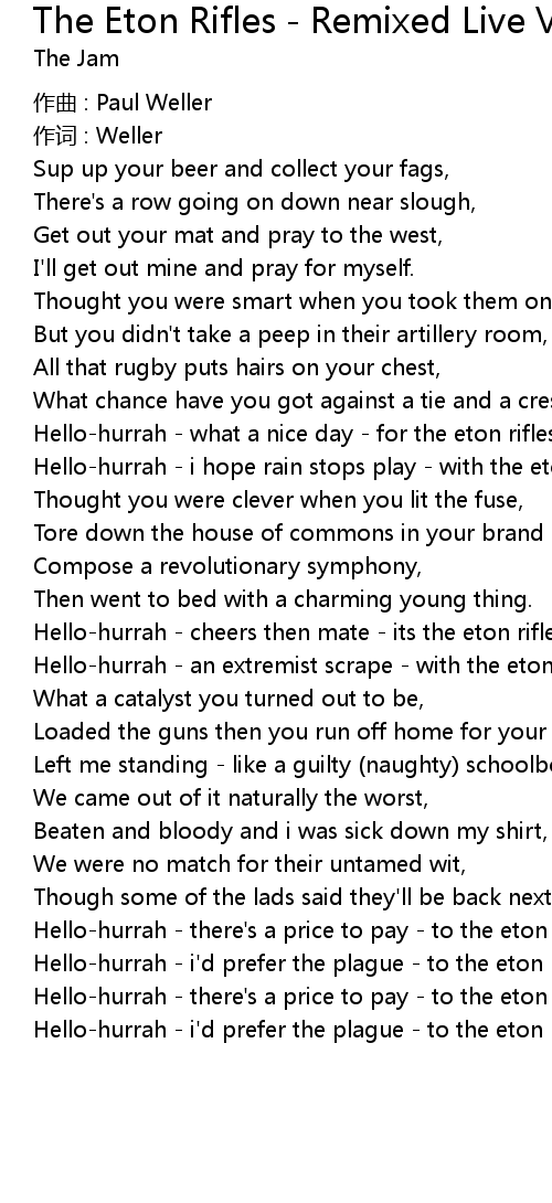 | Hello-hurrah - there's a price to pay - to the eton rifles, | |