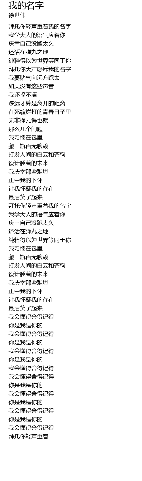 | [00:02.447] | 拜托你轻声重着我的名字 |