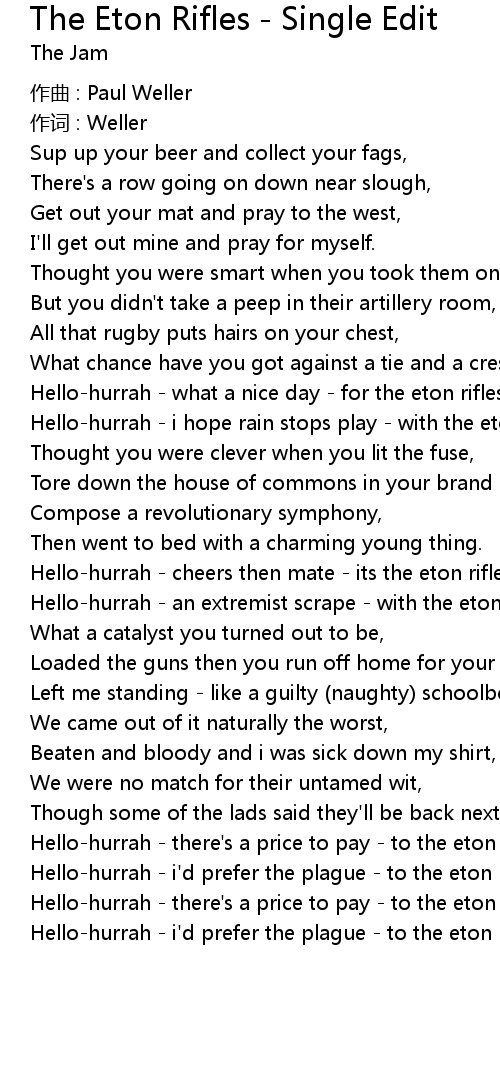 | Hello-hurrah - there's a price to pay - to the eton rifles, | |
