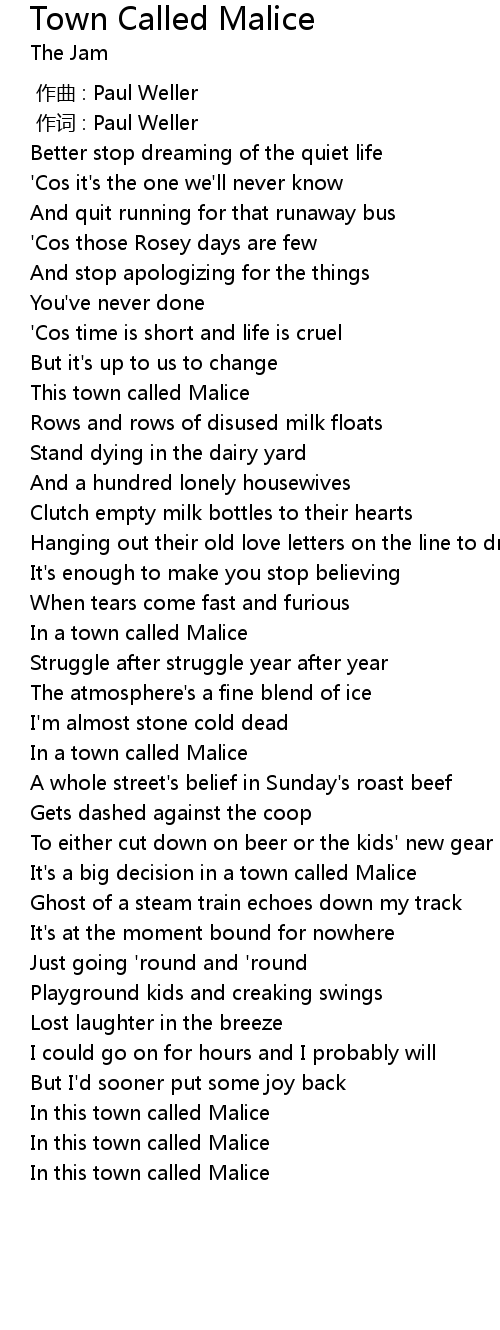 | [00:32.43] | This town called Malice |