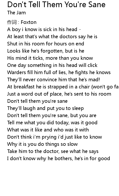| Don' t tell them you' re sane | |
