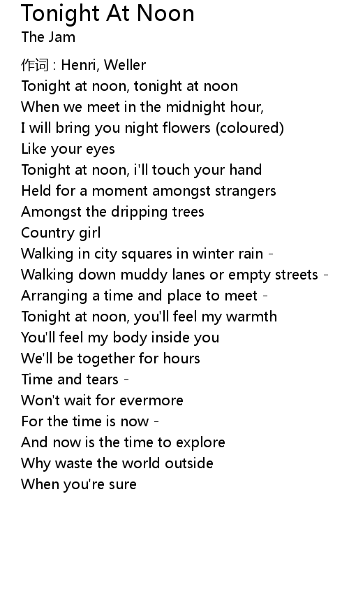 | Tonight at noon, tonight at noon | |