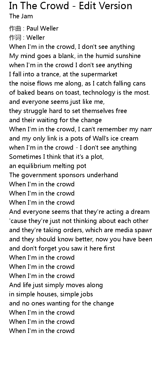 | When I' m in the crowd | |