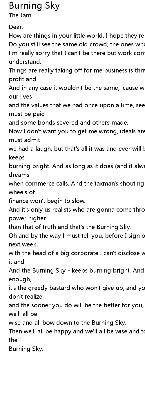 we had a laugh, but that's all it was and ever will be, 'cause the Burning Sky keeps |