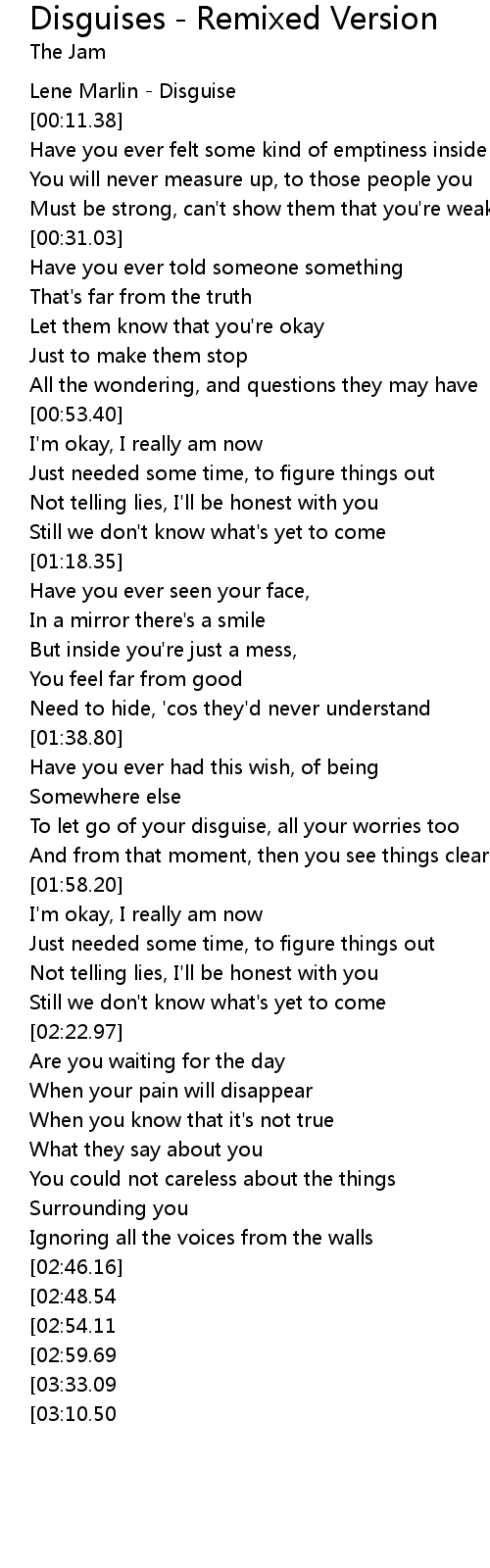 | [01:46.37] | To let go of your disguise, all your worries too |