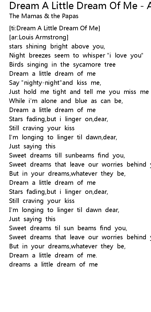 Dream A Little Dream Of Me - Album Version With Introduction Lyrics