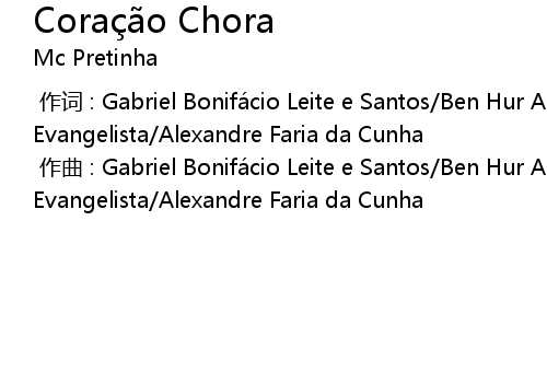 | [00:00.00-1] | 作词 : Gabriel Bonifácio Leite e Santos/Ben Hur Andrade Evangelista/Alexandre Faria da Cunha |