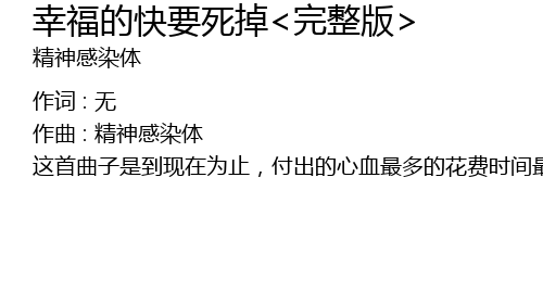 | zhe shou qu zi shi dao xian zai wei zhi, fu chu de xin xue zui duo de hua fei shi jian zui zhang de qu zi, ke neng ting qi lai ta dan diao jian dan, wo mei ci lai ling gan shi hou dou shi hen ya yi, xie zhe shou qu zi he le hen duo de jiu, ke neng zhe shou qu zi shi wo de fu neng liang la ji zhan, dan shi wo hen ai zhe shou qu zi, dui yu wo lai shuo zhe shou qu zi shi te bie de cun zai, xie wan zhe shou qu zi hou, wo jiu shan chu le jie jin 1 ge G de gong cheng mu dai, wo bu zhi dao hui bu hui you ren ting dong wo xiang biao da de dong xi, wo zhi xi wang ting dao zhe shou ge de ren, bu yao bei zhe qu zi ying xiang, wen rou ji ji de huo xia qu, xi wang ni men xing fu |