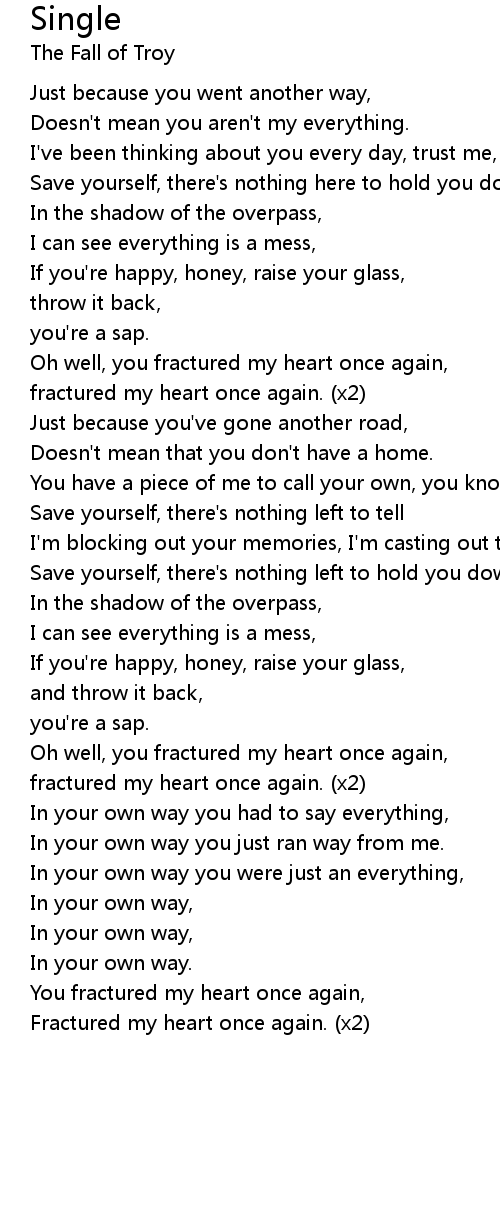 Oh well, you fractured my heart once again, |