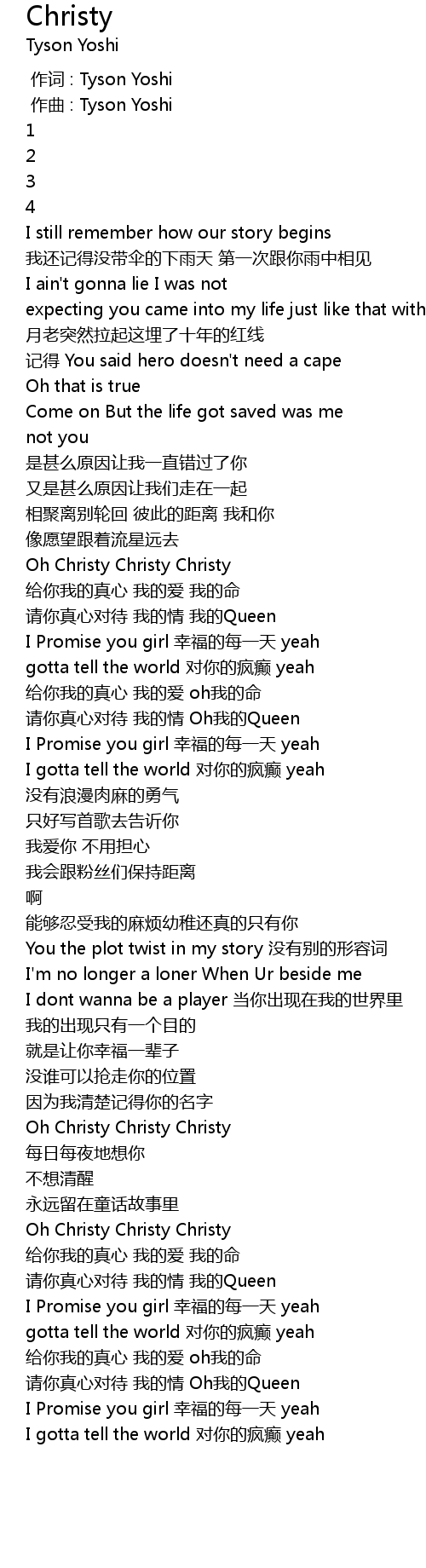 | [00:00.000] | 作词 : Tyson Yoshi |
