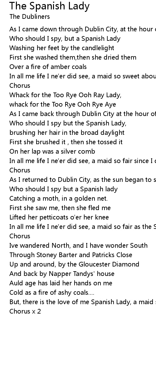 But, there is the love of me Spanish Lady, a maid so sweet about the soul |