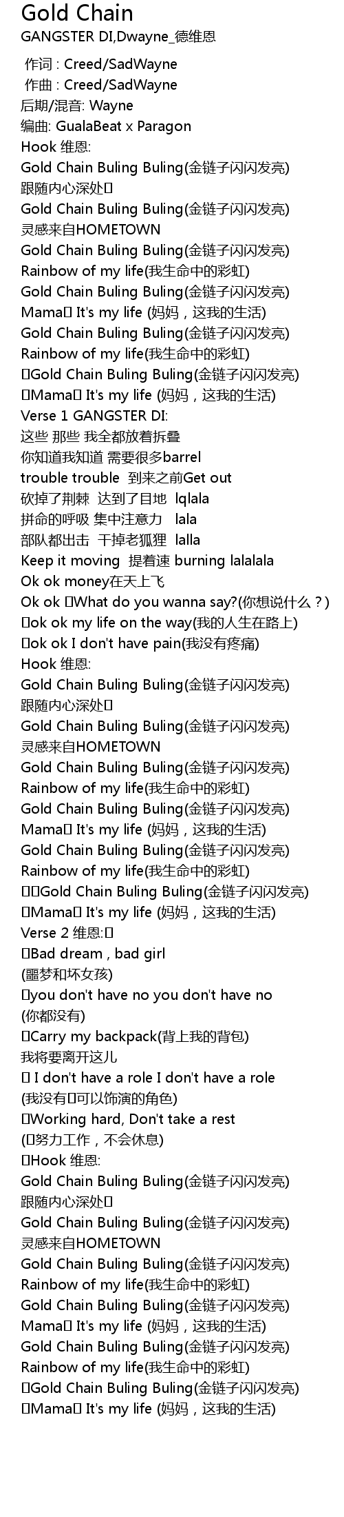 | [01:41.198] | Gold Chain Buling Buling(金链子闪闪发亮) |
