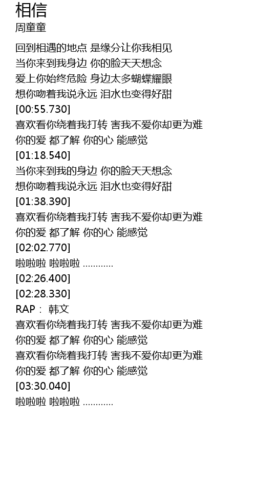 | [03:30.710] | 啦啦啦 啦啦啦 ............ |