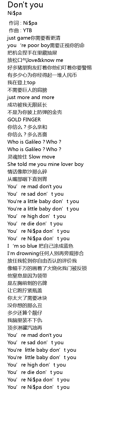 | [00:23.404] | 好多猪朋狗友盯着你他们叮着你要警惕 |