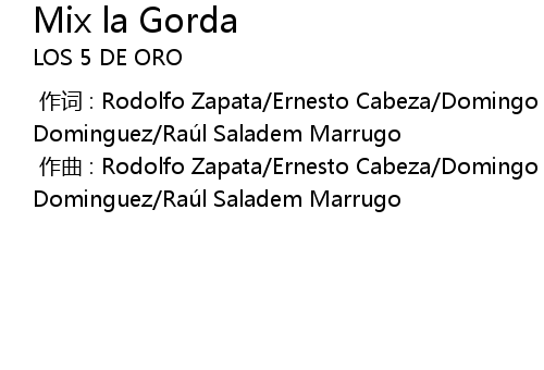 | [00:00.00-1] | 作曲 : Rodolfo Zapata/Ernesto Cabeza/Domingo Gonzalez Dominguez/Raúl Saladem Marrugo |