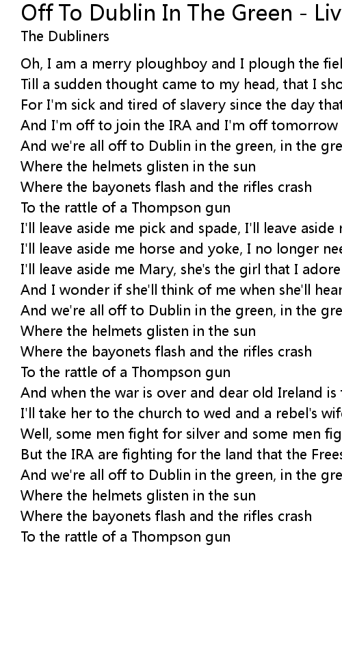 And we're all off to Dublin in the green, in the green |