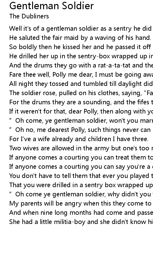 | Well it' s of a gentleman soldier as a sentry he did stand. | |