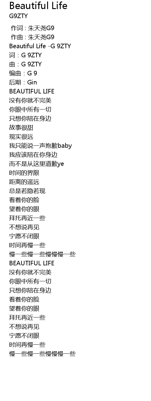 | [00:00.00] | Beautiful Life -G 9ZTY |