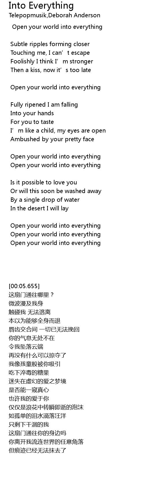 | Album | Into Everything (Featuring Deborah Anderson) (Musical Version) |