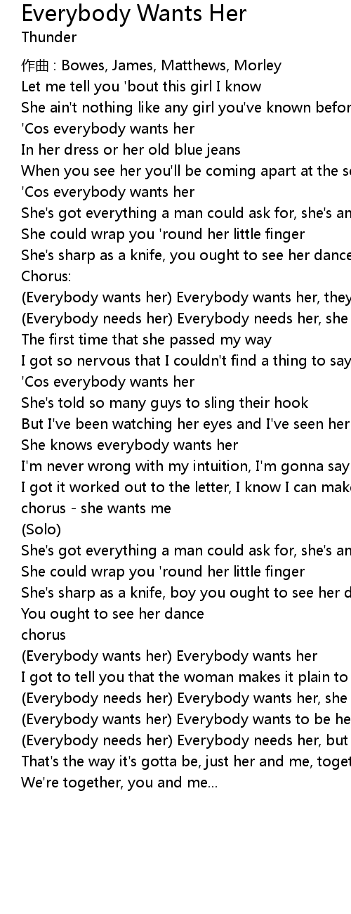 | Everybody wants her Everybody wants her, they make it plain to see | |