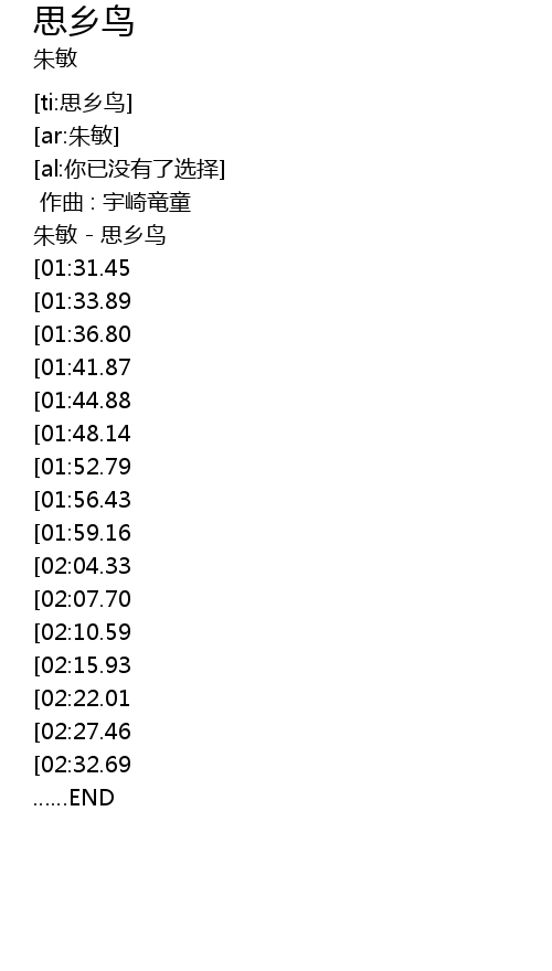 | [00:00.00] | 朱敏 - 思乡鸟 |