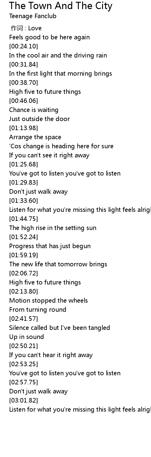 | [03:02.33] | Listen for what you're missing this light feels alright |