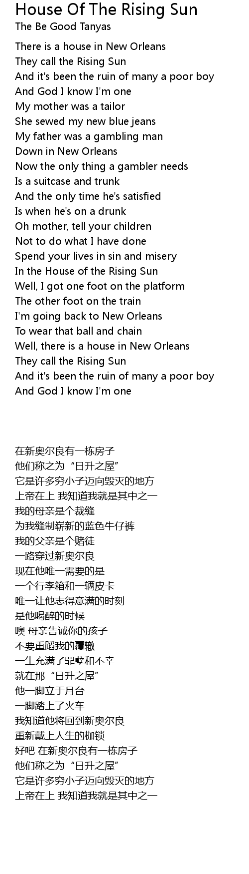 Well, there is a house in New Orleans |