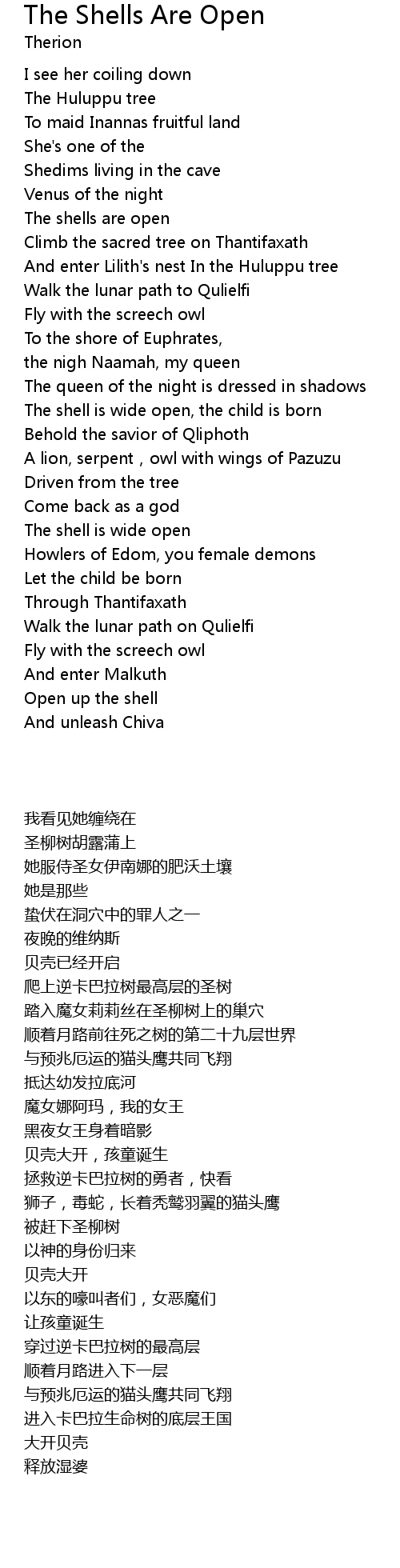 | [01:31.23] | And enter Lilith' s nest In the Huluppu tree |