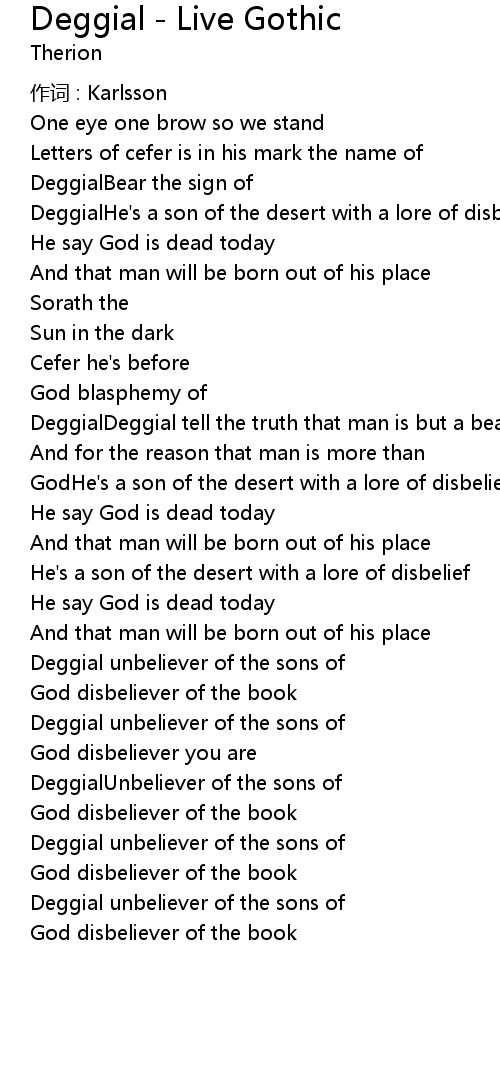 | GodHe' s a son of the desert with a lore of disbelief | |