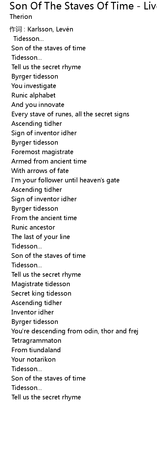 | Song | Son Of The Staves Of Time - Live Gothic |