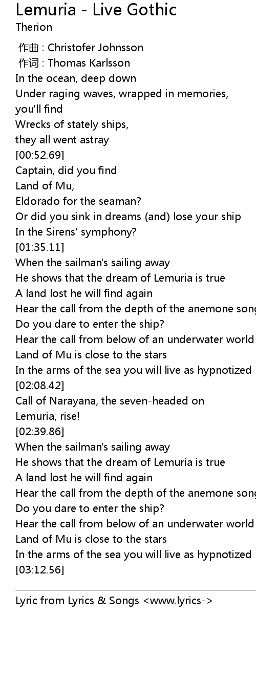 | [02:43.78] | He shows that the dream of Lemuria is true |